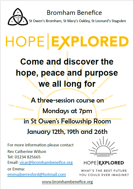 For those who would like to come along with their hand sewing, knitting or crochet and craft with fellowship our group next meets on 14th January 2-4pm in St Owen’s Fellowship Room. Please contact Margaret on 01234 824402 if you are interested in coming along. £2 per session, refreshments included.